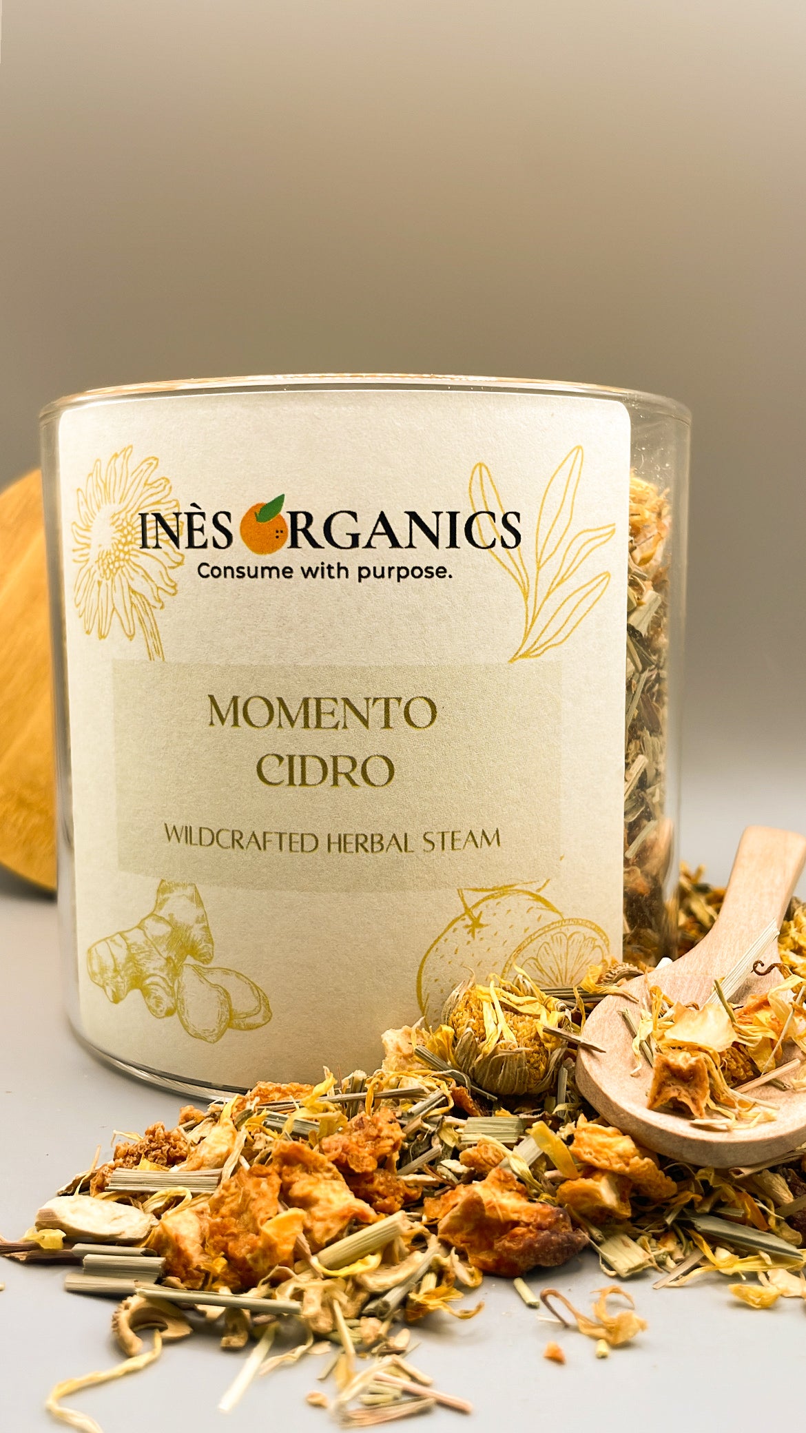 The Momento Cidro Respiratory contains a mixture of herbs and roots to resemble a "citrus moment". Besides the antioxidants and skin brightening it provides, the inhalation of these particular herbs results in a immune boosting experience.
